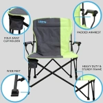 The Liberty Leisure LLFC-3 Folding Chair in Lime Green is a perfect companion for outdoor activities such as camping, caravanning, or relaxing in the garden. This chair is designed for maximum comfort with its padded armrests and heavy-duty frame, ensuring durability and stability on various surfaces. The extra-wide feet prevent sinking into soft ground, making it ideal for outdoor use. It also features a foldable drink holder for added convenience. Features Heavy-duty frame for durability Padded armrests for added comfort Foldable drink holder Wide feet to prevent sinking into soft ground Compact and easy to fold for storage Specifications Open dimensions: 101 x 55 x 64 cm Folded dimensions: 105 x 25 x 25 cm Weight: 6.6 kg Weight capacity: 110 kg SKU: LLFC-3